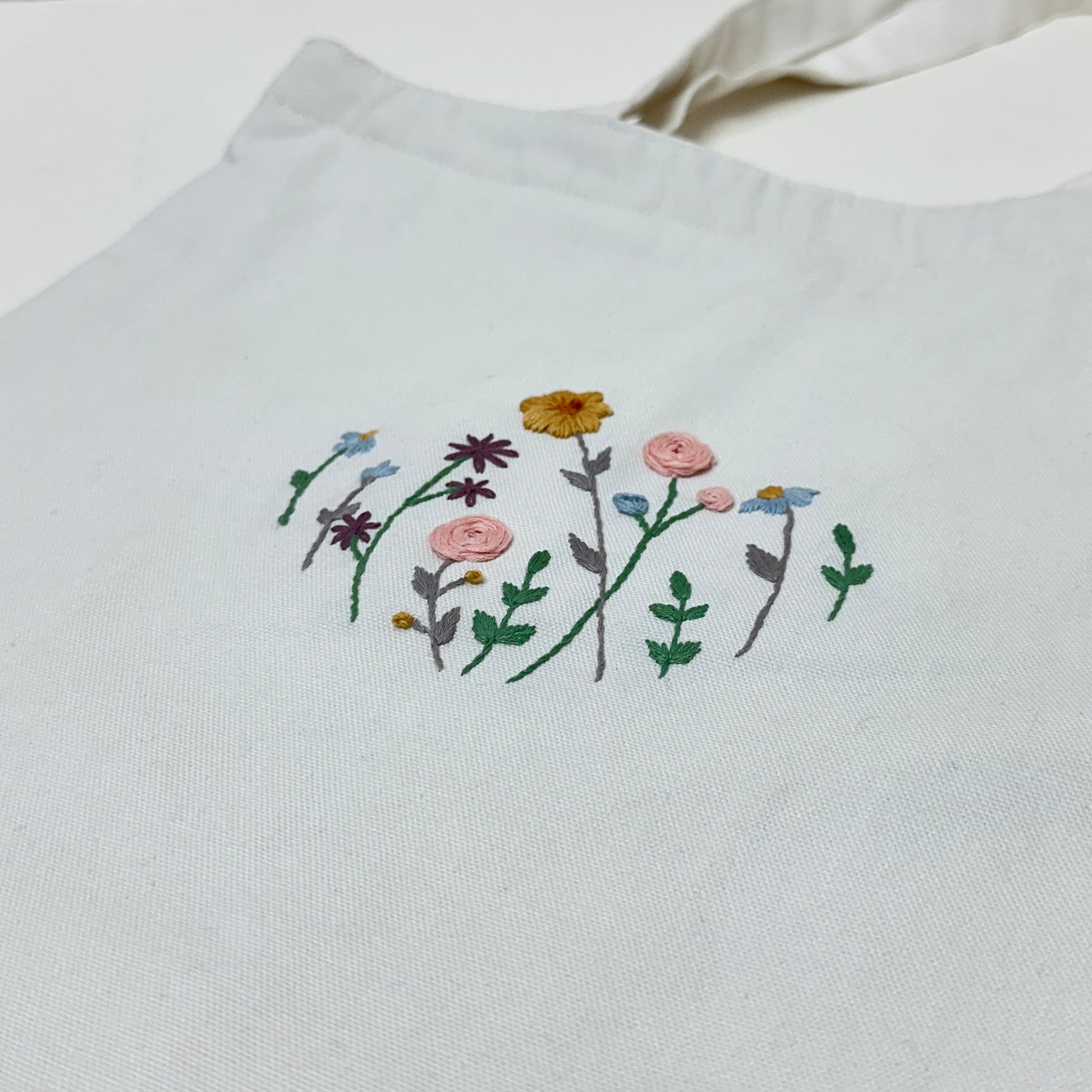 Elegant and pure, this white canvas tote is hand-embroidered by our skilled artisans with precision and care. The bright base brings every stitch to life, giving a fresh and timeless look. Each bag takes hours to craft and is released in limited numbers—your everyday essential, reimagined as wearable art.