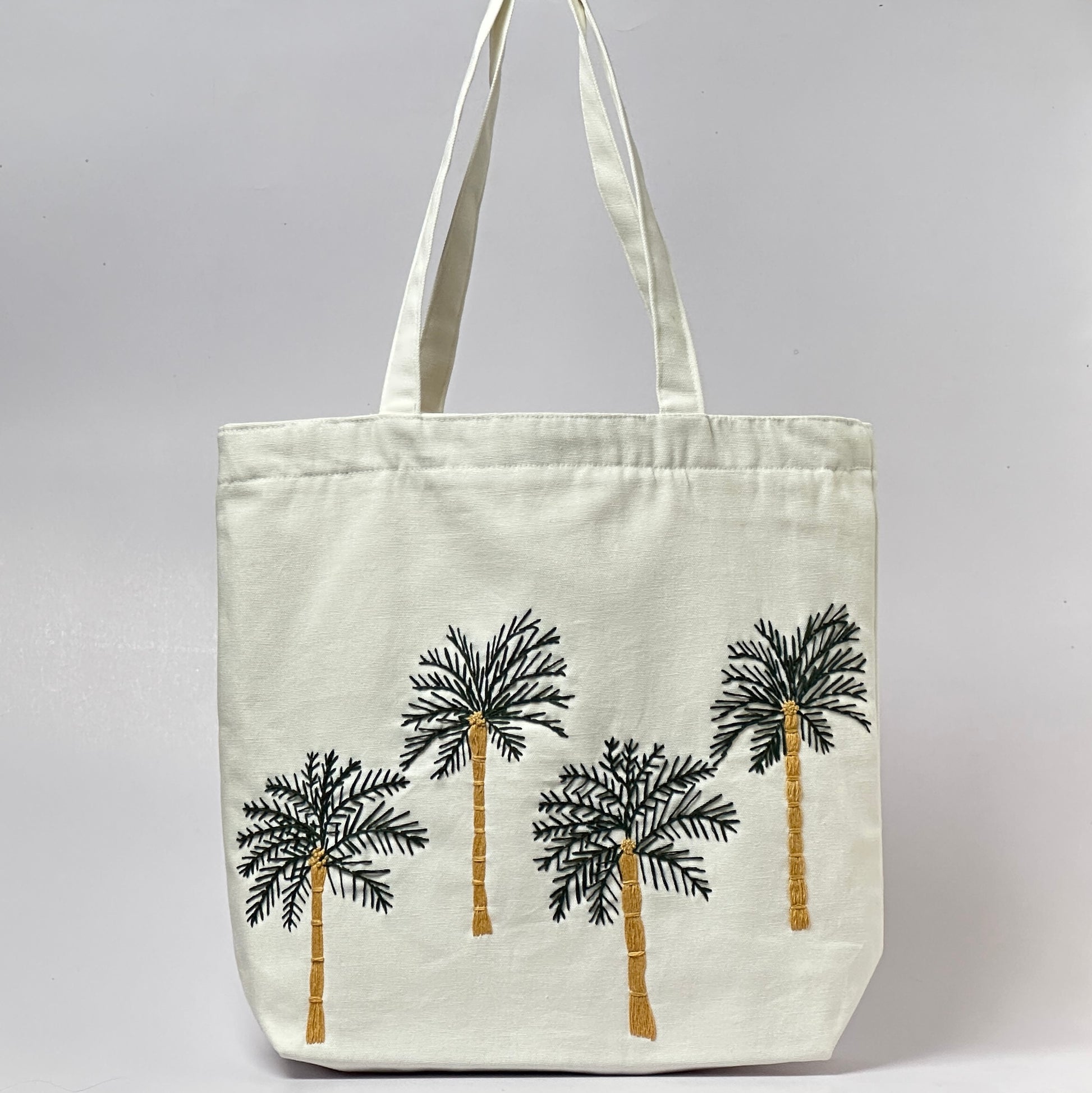 Elegant and pure, this white canvas tote is hand-embroidered by our skilled artisans with precision and care. The bright base brings every stitch to life, giving a fresh and timeless look. Each bag takes hours to craft and is released in limited numbers—your everyday essential, reimagined as wearable art.